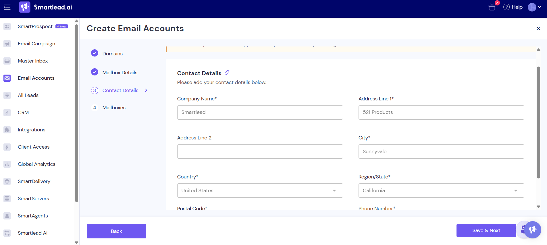 Log into Smartlead → Head to Email Accounts → Click Add Account.