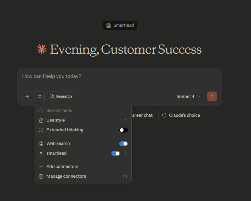 With the Smartlead MCP server, you can now access and interact with your Smartlead data directly inside Claude. This integration allows you to manage campaigns, retrieve insights, and perform diagnostics seamlessly - without ever leaving your chat interface!