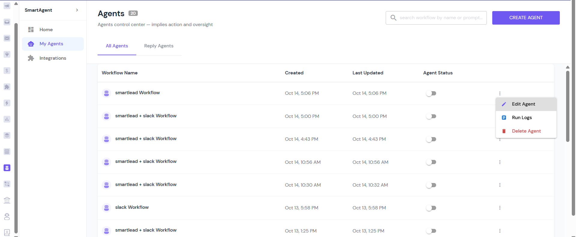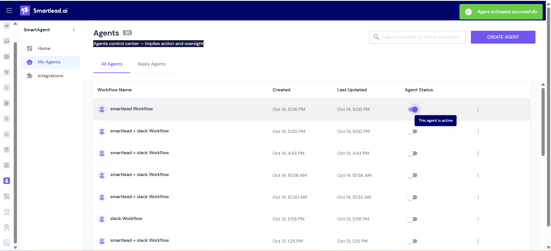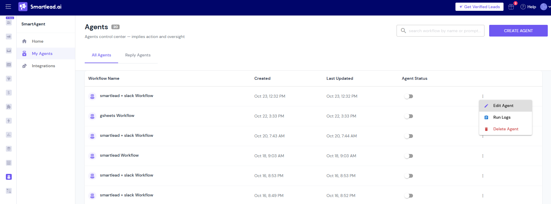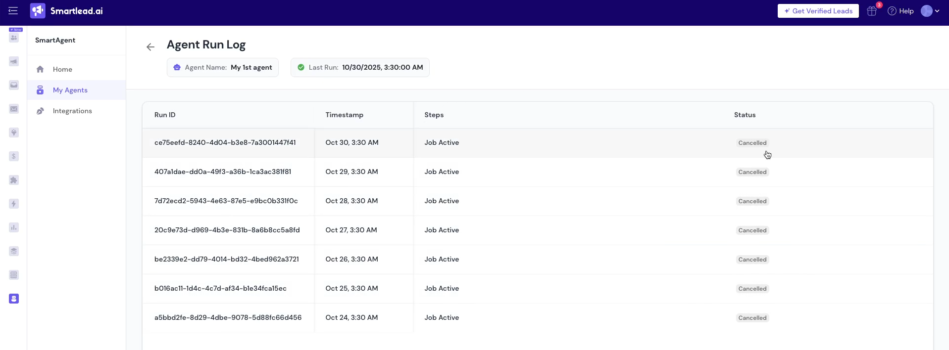 Go to SmartAgents → My Agents to view, edit, or pause your agents.