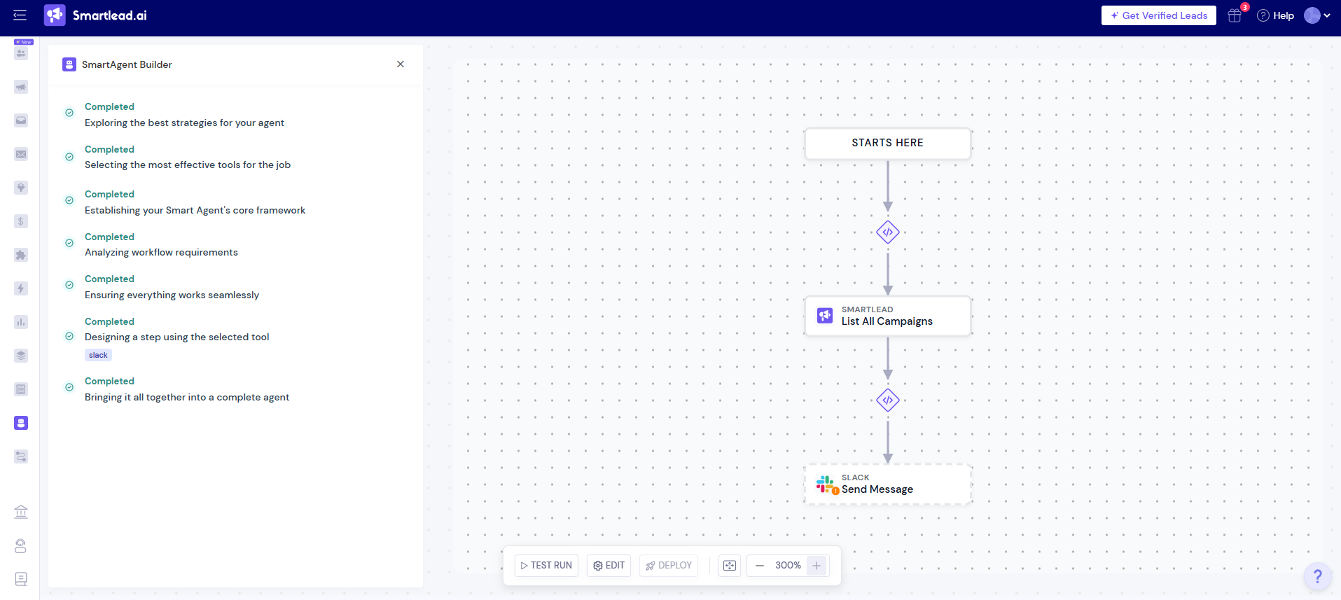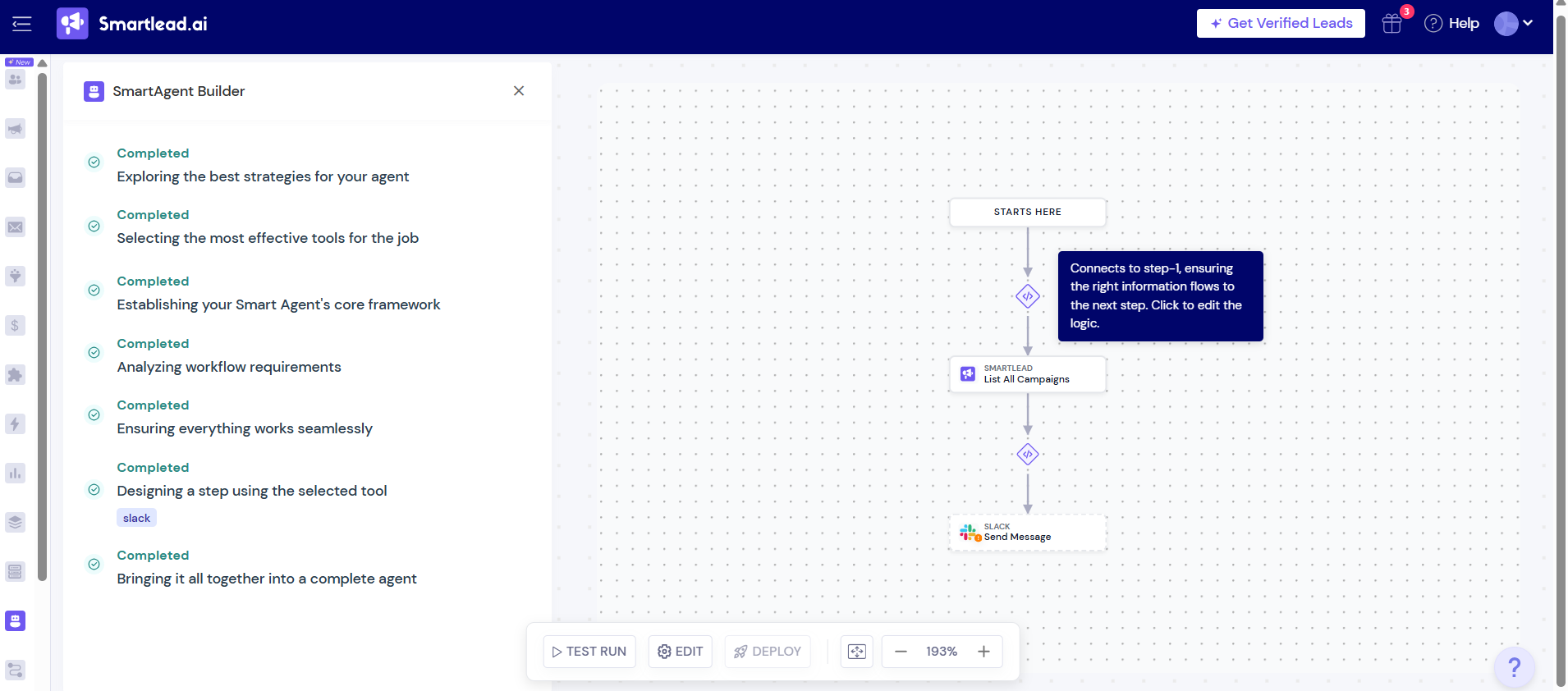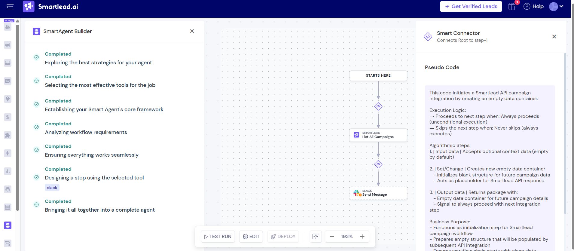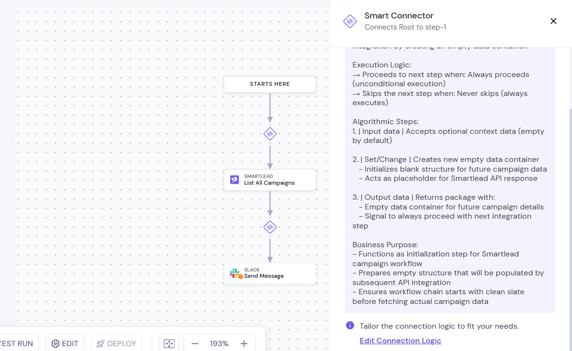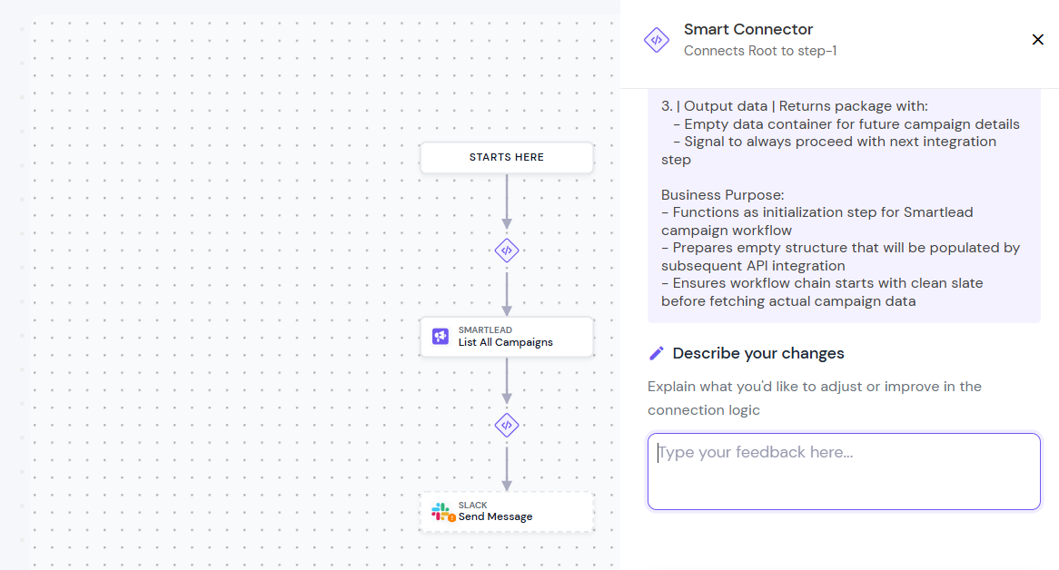 Once your SmartAgent is generated, you can see the entire workflow and understand how each step connects.