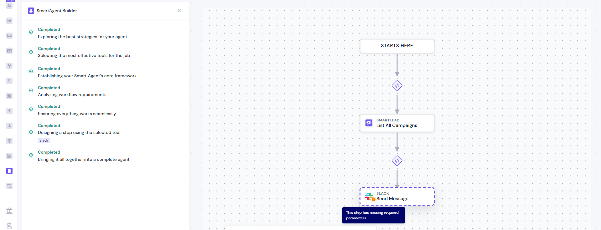 Automate alerts: Have SmartAgents notify you of discrepancies or anomalies across your Smartlead workflow