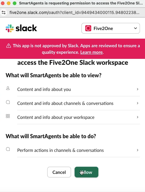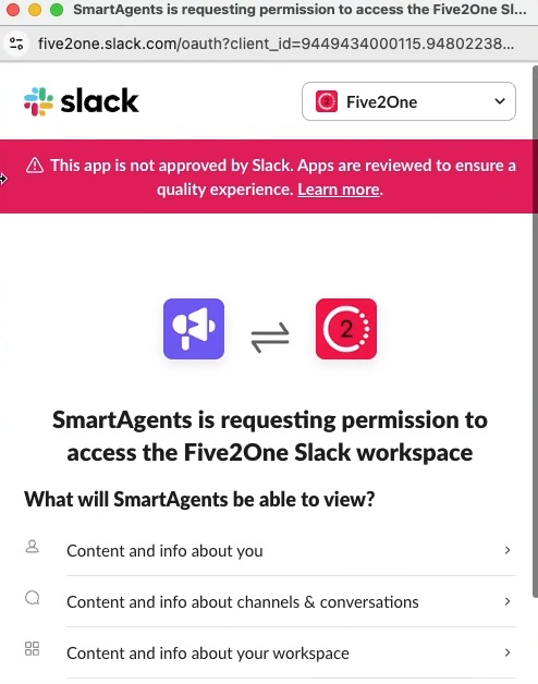 Choose the Slack channel where you want to receive messages (for example, “#smartagents-demo”).
