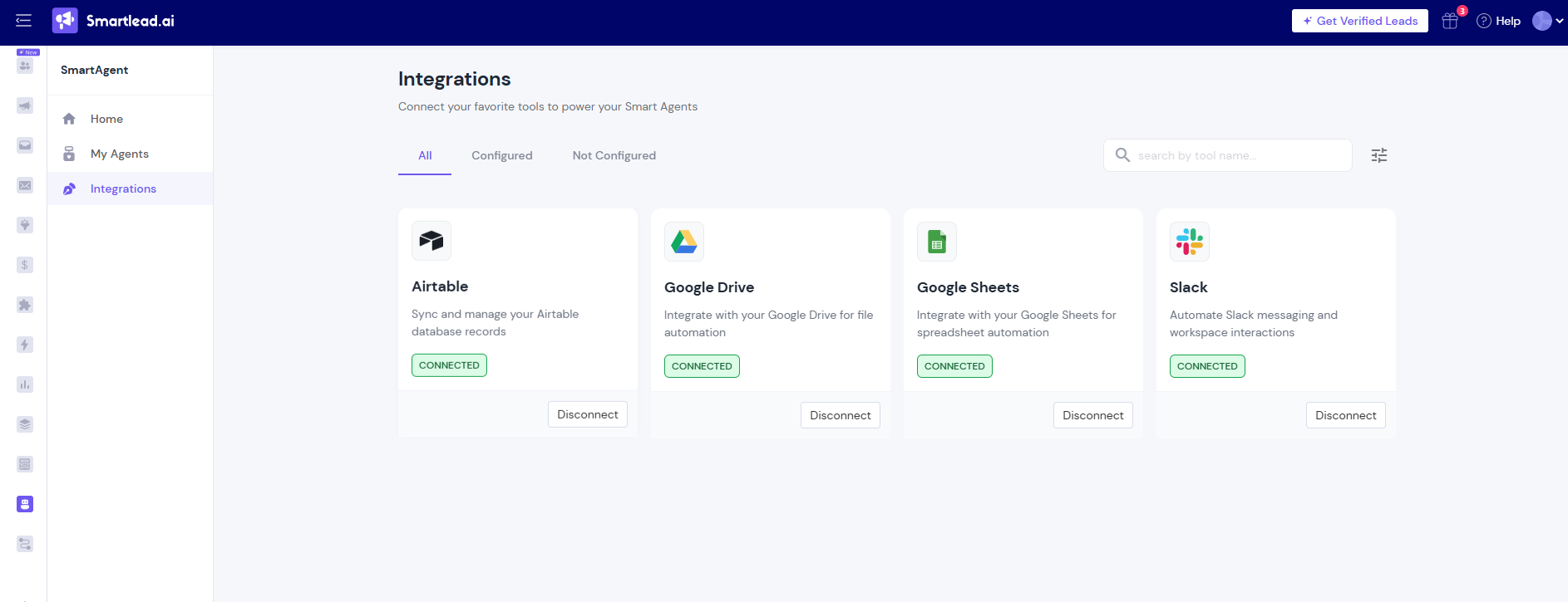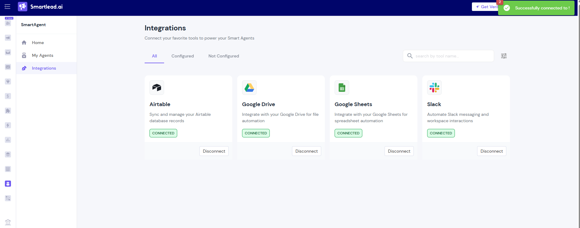 Before creating and using SmartAgents, we recommend connecting your tools.