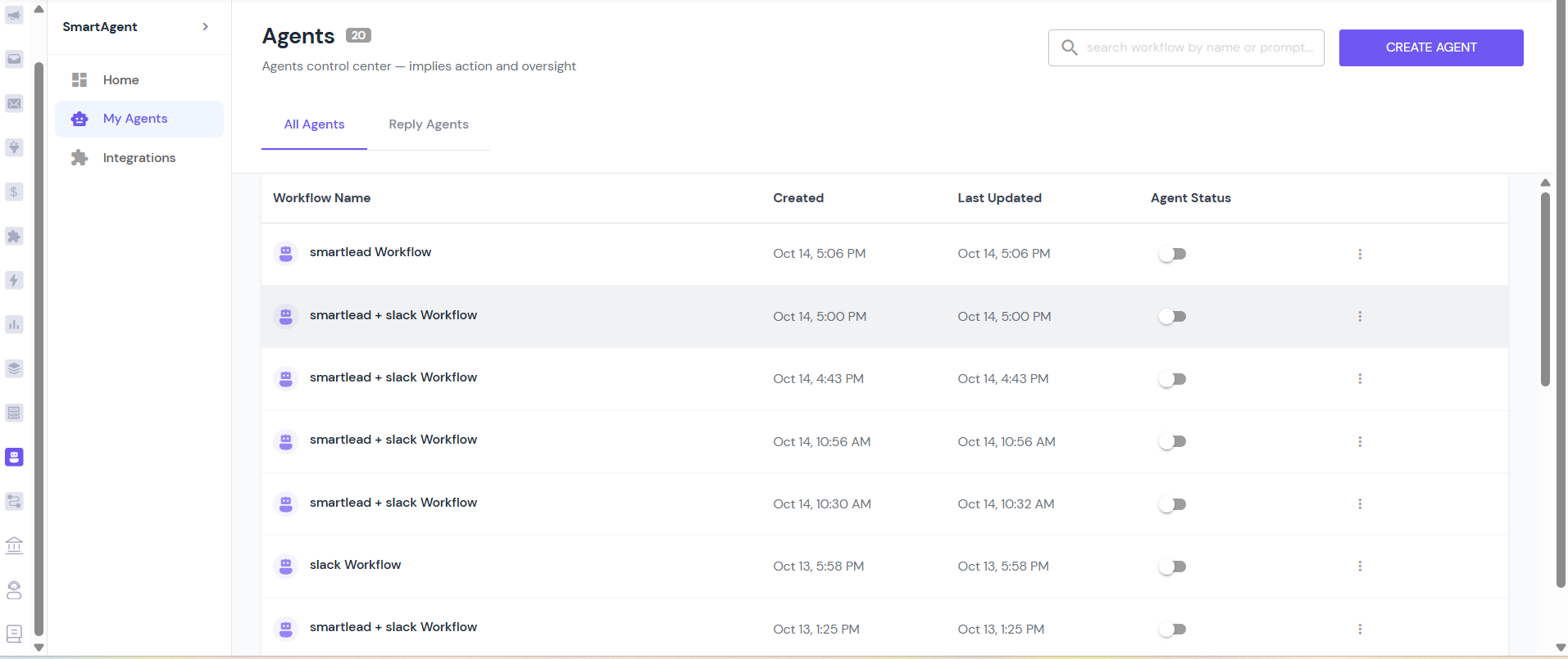 Go to SmartAgents → My Agents to view all your created and deployed agents.
