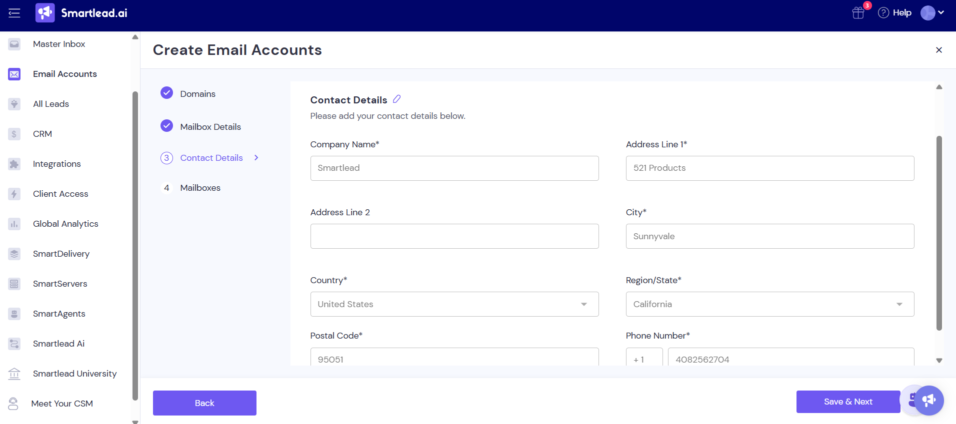 Log in to Smartlead → Go to Email Accounts → Click Add Account
