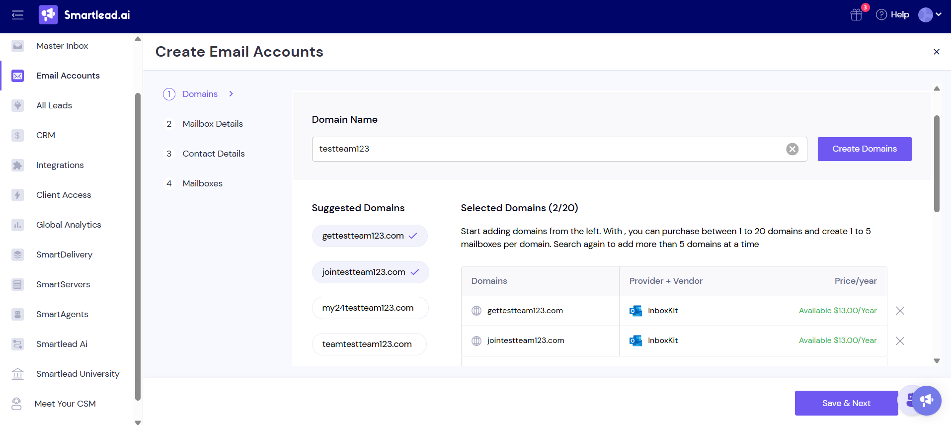Domains and mailboxes are exclusive to Smartlead and non-transferable.