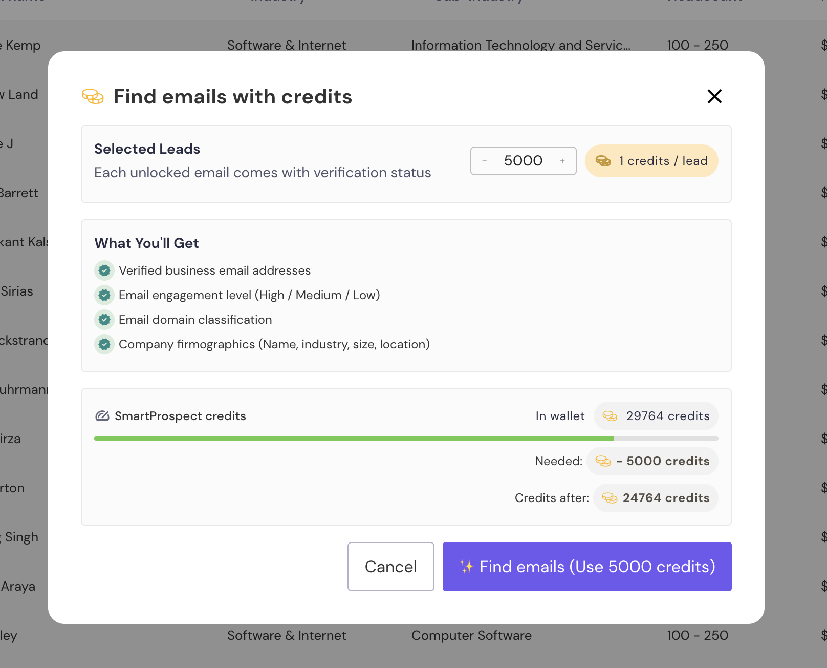 You’ll use SmartProspect credits, already included in your Smartlead plan.