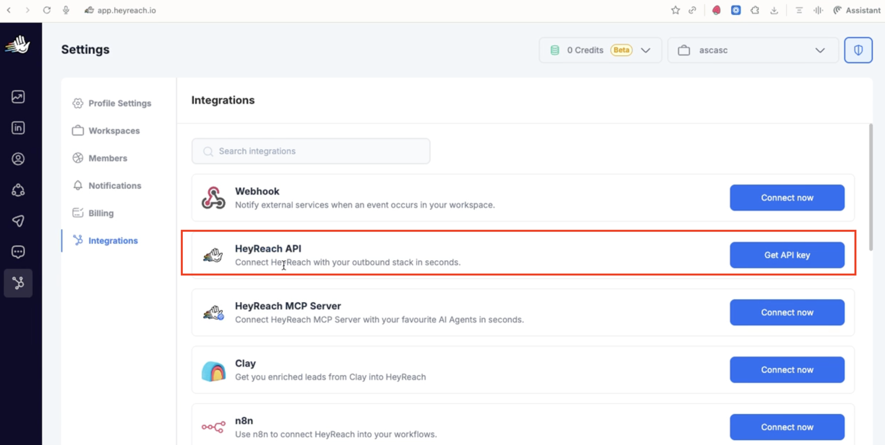 When prompted to Enter HeyReach API Key, paste the key you copied from HeyReach.