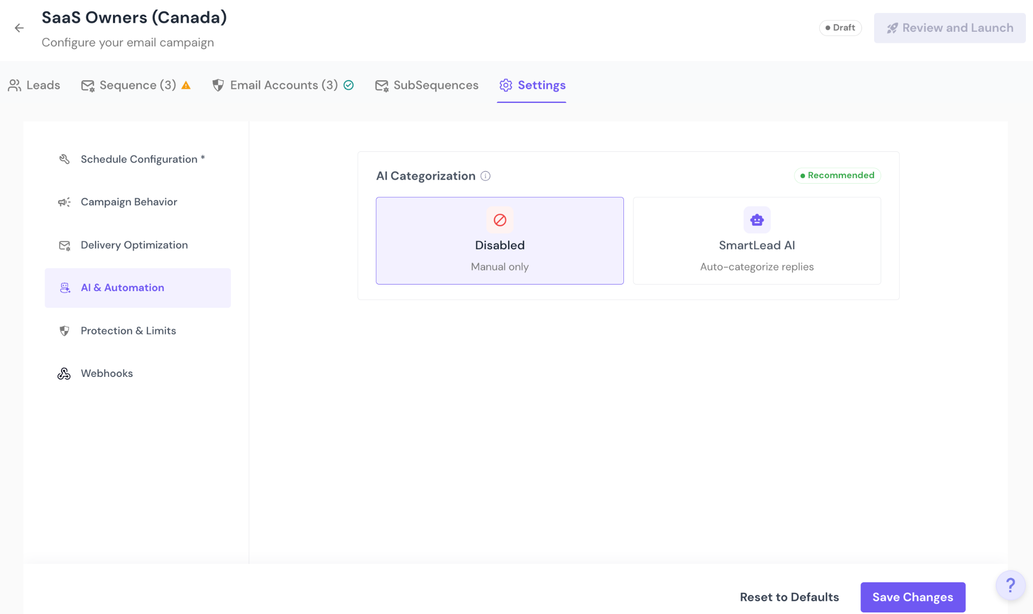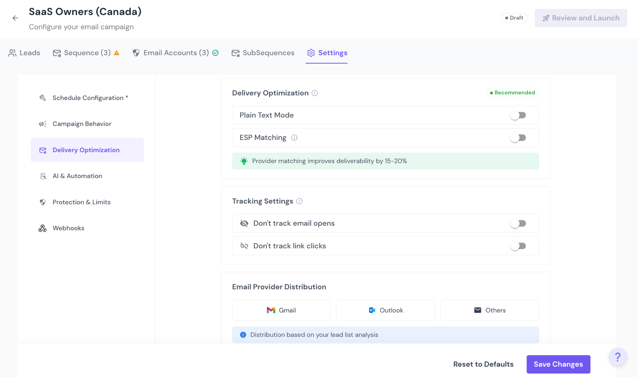 Applies Smartlead’s delivery optimizations to improve inbox placement and sending stability.