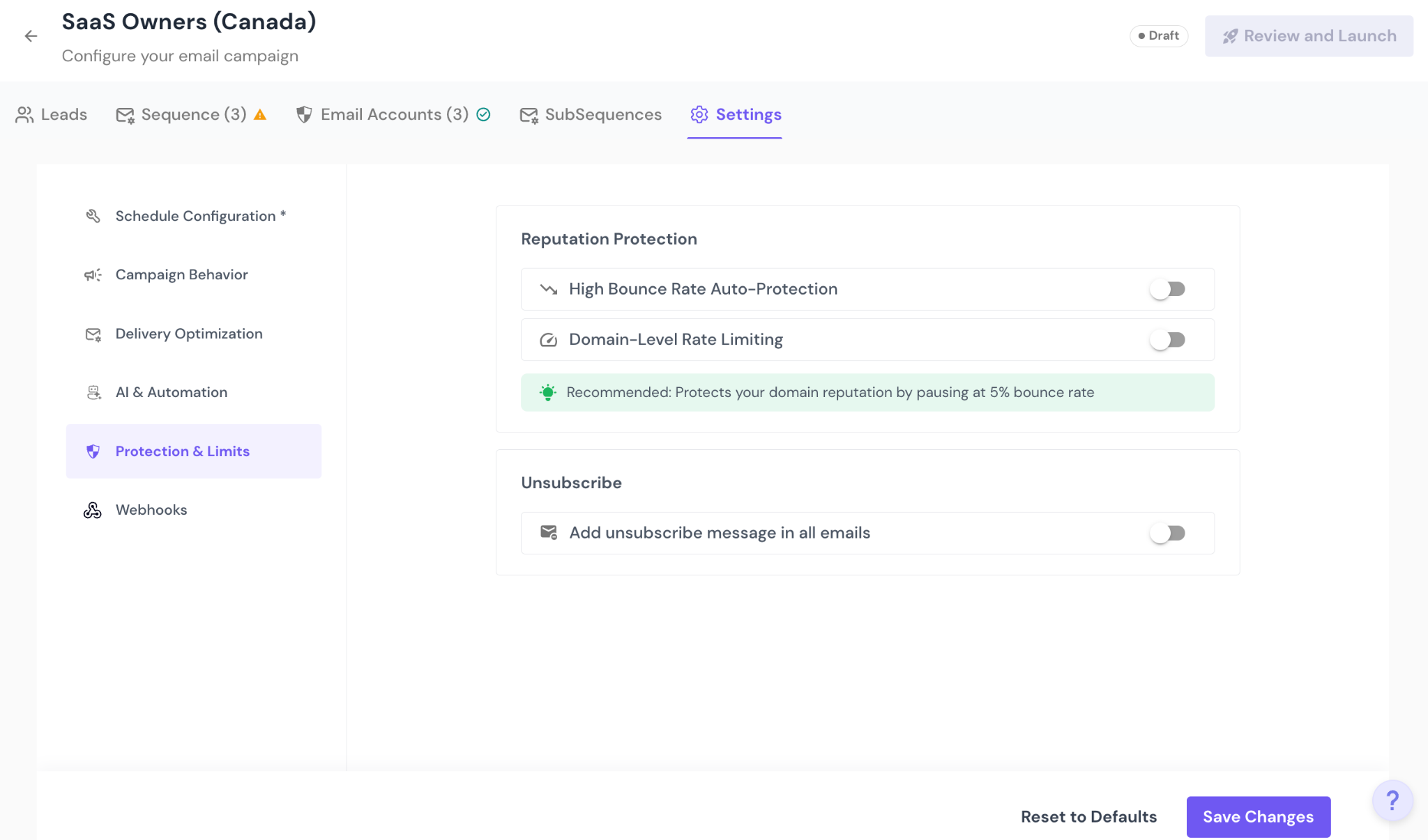 Filters out leads that have bounced in your previous campaigns, reducing the risk of repeat bounces.