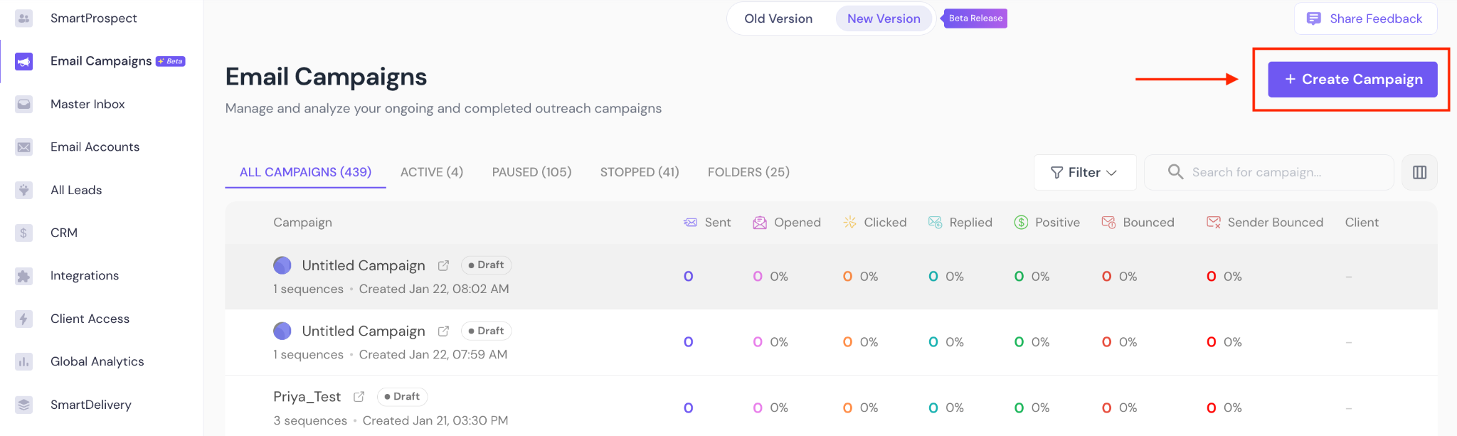 This guide walks you through the updated campaign creation flow, step by step, so you can create and launch a cold email campaign confidently in the new interface.