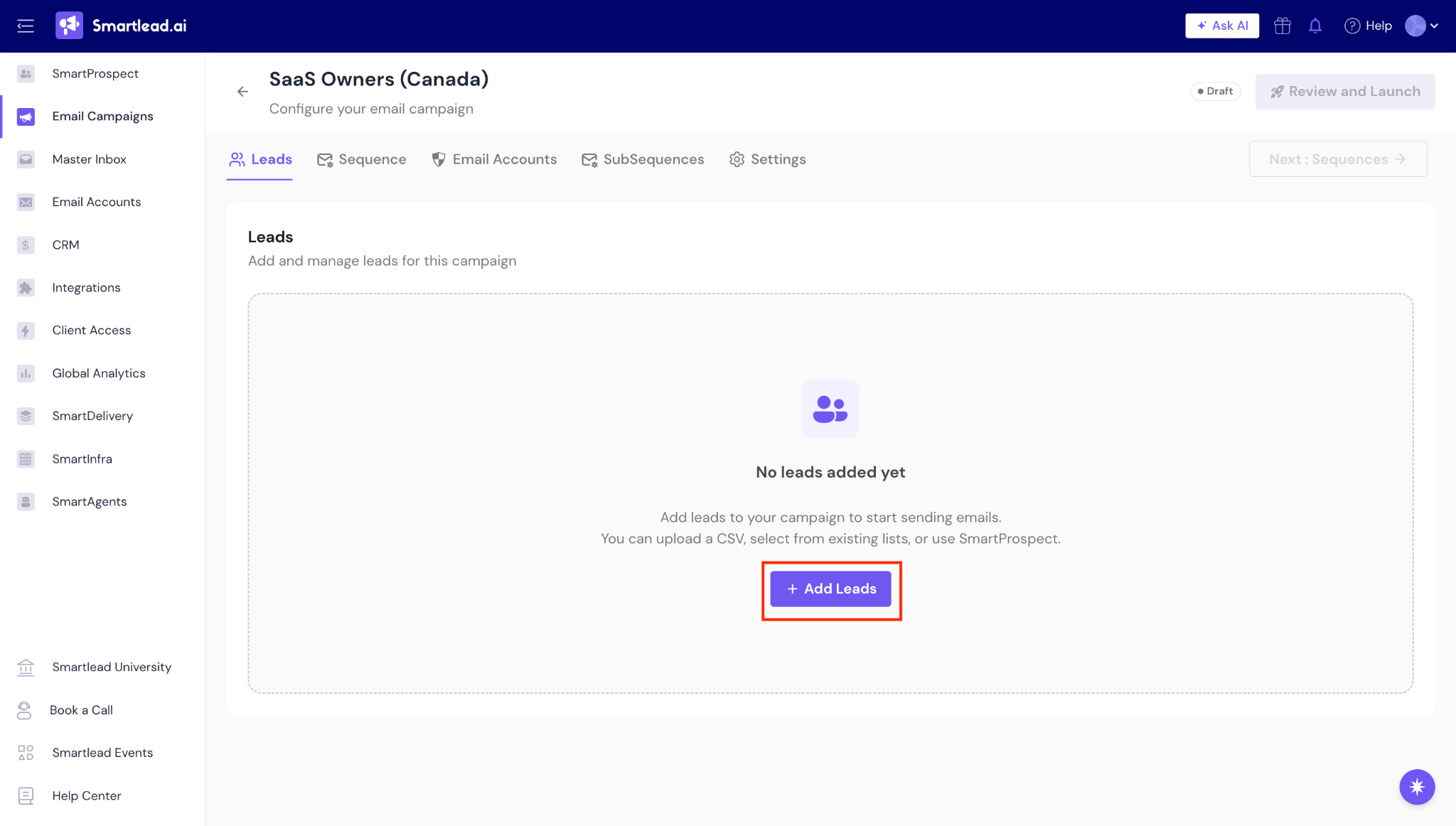 Find, verify, and add new prospects using Smartlead’s built-in lead generation tool.